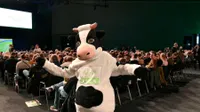 TdoH-Maskottchen Kuh Karla war auf der Grünen Woche um bei der BDL-Jugendveranstaltung vor mehr als 2000 jungen Menschen aus den ländlichen Räumen den Tag des offenen Hofes 2026 einzuläuten. Als offizieller Startschuss für den TdoH im Juni übergab sie zwei symbolisch große Schlüssel; einen an die Bundesjugendministerin Karin Prien und einen an den Bundeslandwirtschaftsminister Alois Rainer.